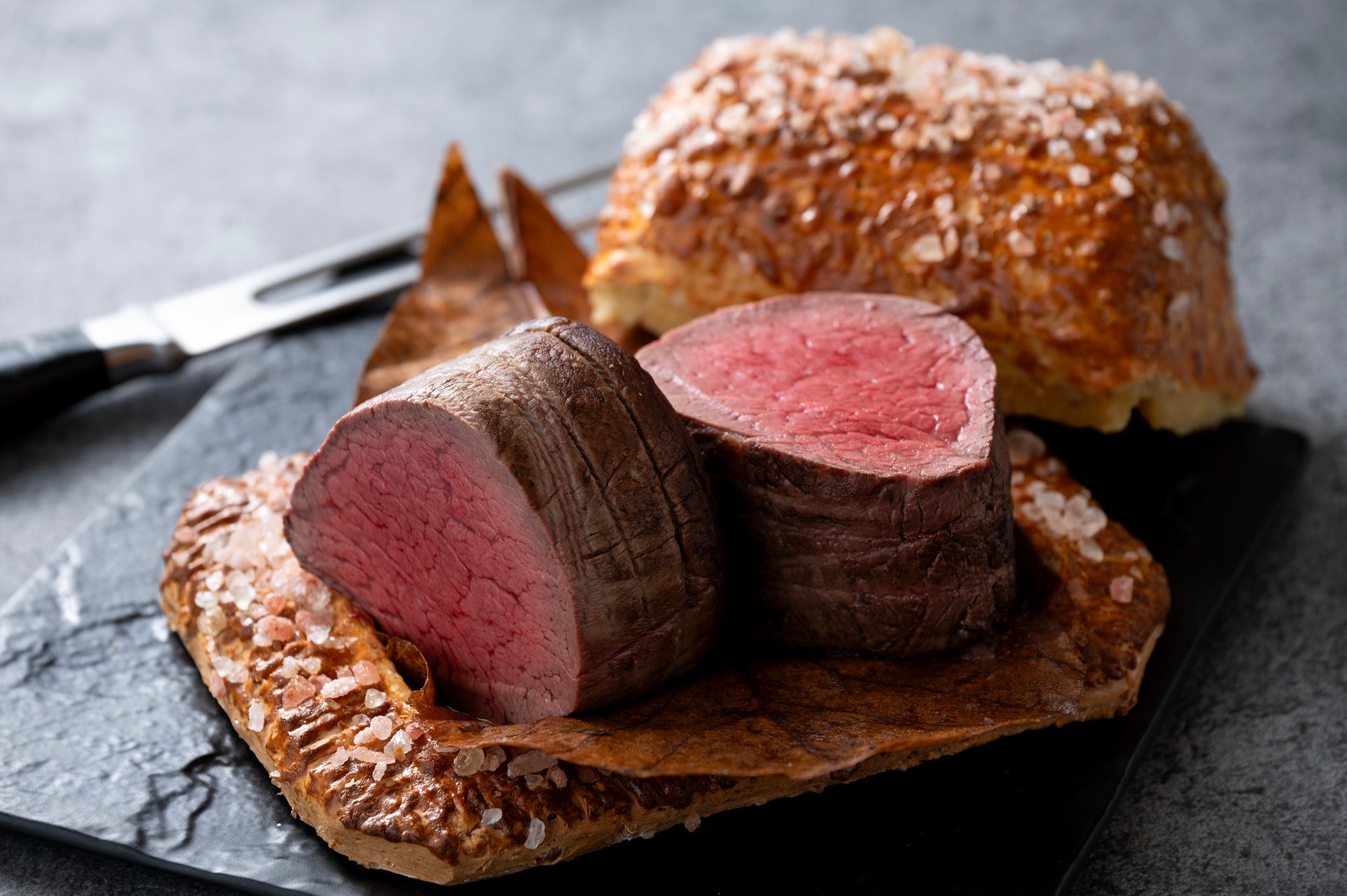 ・朴葉香る飛騨牛フィレ肉の岩塩包み焼き 黒トリュフのソース(サービススタッフによるデクパージュ)