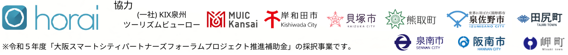 〇協力:KIX泉州ツーリズムビューロー、一般社団法人関西イノベーションセンター(MUIC Kansai)、岸和田市、貝塚市、熊取町、泉佐野市、田尻町、泉南市、阪南市、岬町