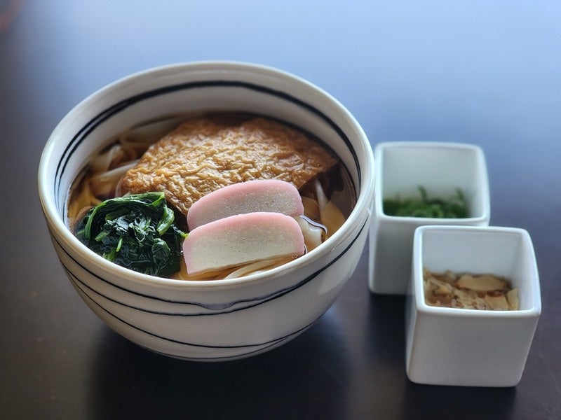 風味豊かな濃いめの出汁とつるりとした食感の麺が絡む、あっさりとした味わいです。
