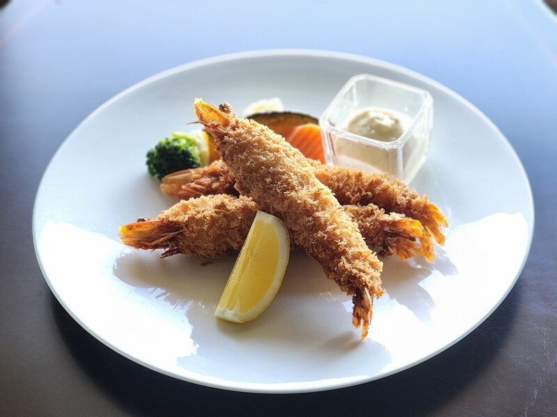 名古屋名物、プリプリ食感の大海老フライ3本を豪快に盛り付けました。