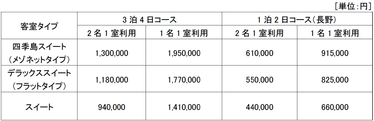 多くのお客さまからご好評をいただいている、「3泊4日コース/秋」、「1泊2日コース(長野)/秋」のコースを継続して設定します。