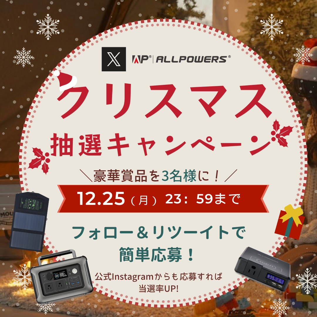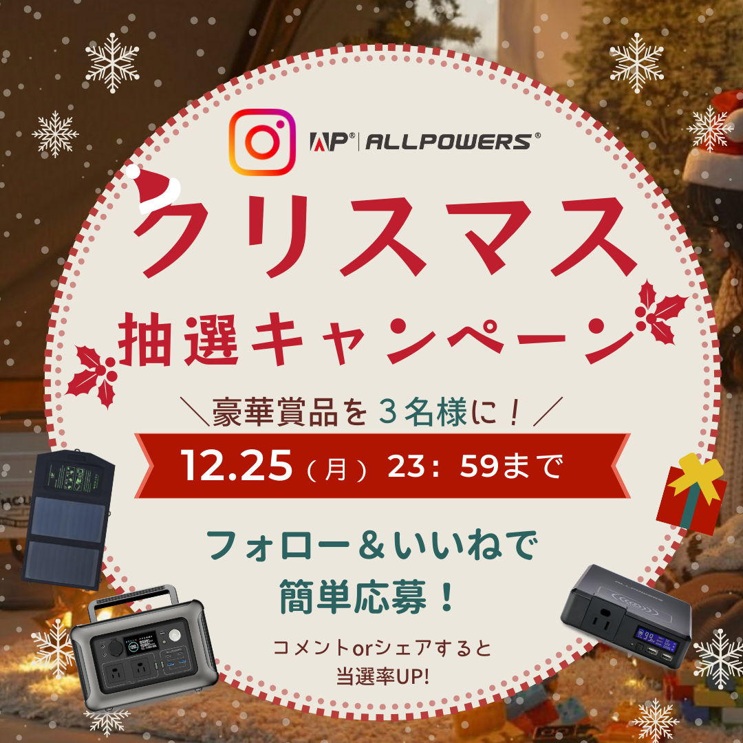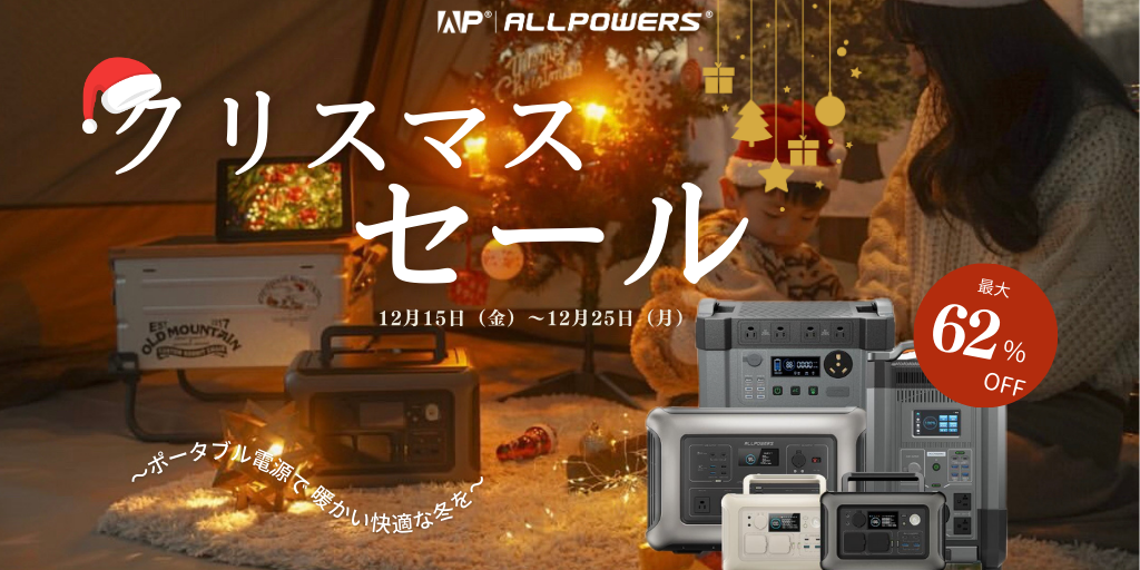 ALLPOWERS(オールパワーズ)株式会社は、寒さ厳しい冬の季節にぴったりのアウトドアアイテムを提供するクリスマスセールを開催いたします。特に冬キャンプ愛好者の方々に、快適で温かなキャンプ体験をお届けするため、ポータブル電源を最大62%OFFの特別価格でご提供いたします。