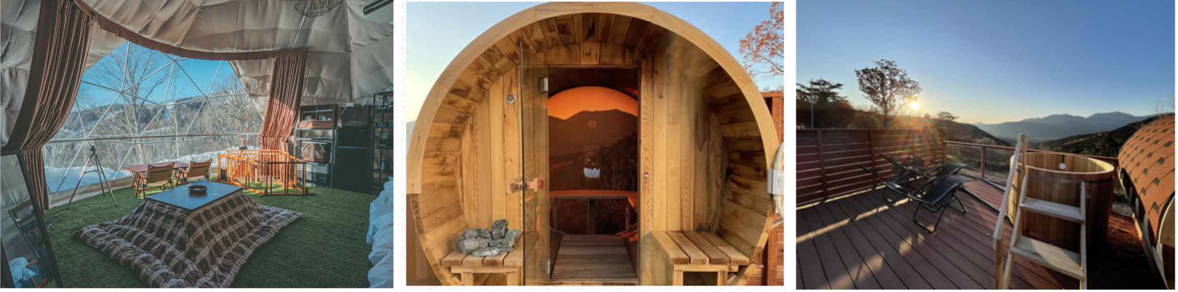 ◆グランピング施設『IORI』愛犬と泊まれる絶景ドームテント!専用バレルサウナも完備!