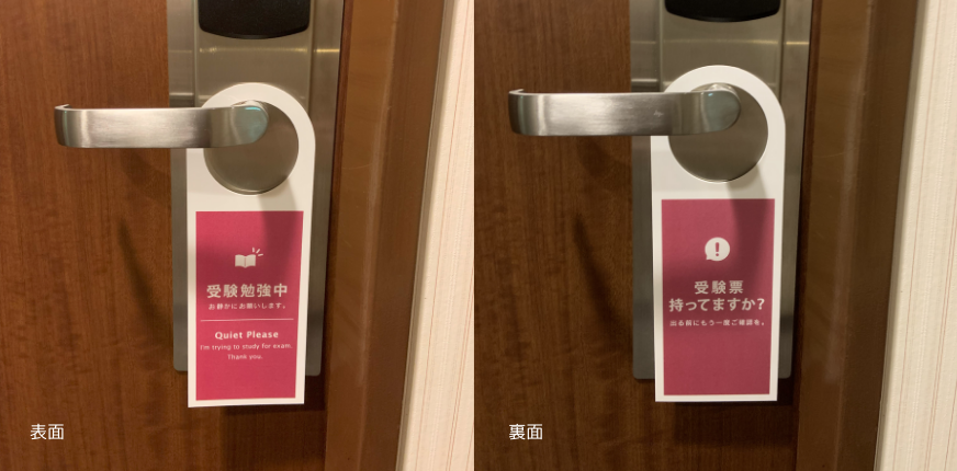 受験生の皆さまが少しでも勉強に集中できるようにドアプレートをご用意しています。こちらも無料で貸し出しを行います。