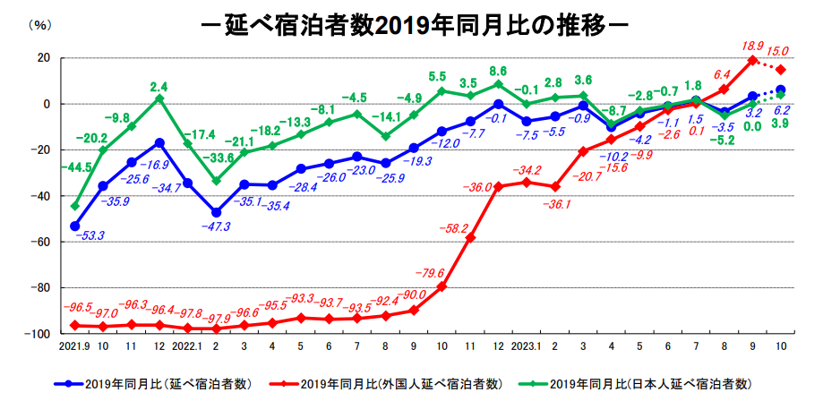 (国土交通省観光庁:宿泊旅行統計調査2023年9月分報道発表資料より)