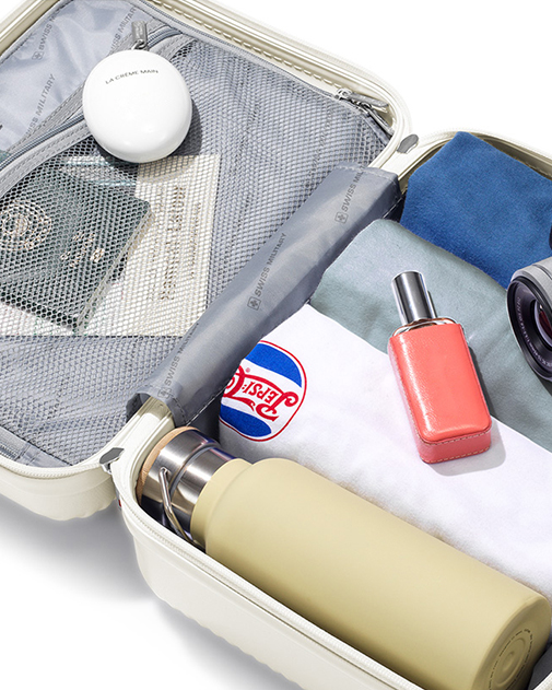 SWISS MILITARYは、丈夫さ、使いやすさ、美しさ、経済性の観点からデザインを追求し、高品質な製品をお求めやすい価格で提供する『アフォーダブル・ラグジュアリー(手に届く高級品)』をブランドコンセプトに、部品の一つ一つに妥協しない、丈夫さと使いやすさを追求し、洗練されたデザイン性を感じさせる製品を展開しています。スーツケースにおいても、世界最大級のポリマーメーカーであるドイツ・コベストロ社の高性能ポリカーボネート素材の採用をはじめ、製品を構成するすべてのパーツを徹底的に吟味することで、ブランドコンセプトを体現する製品に仕上がっています。