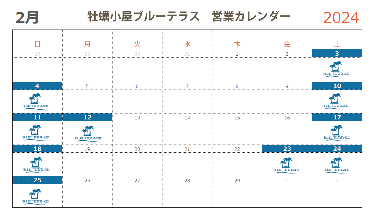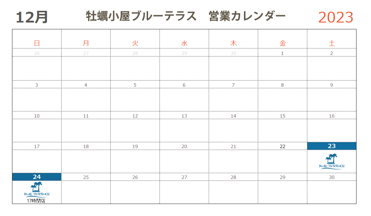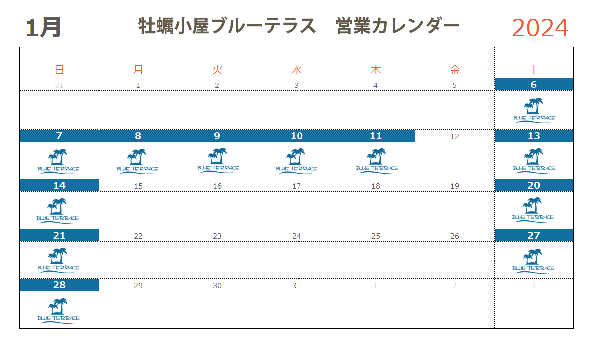 2023年夏に二色の浜海水浴場で営業を行った海の家、「二色の浜ブルーテラス」が2023年冬に二色の浜公園内で牡蠣小屋ブルーテラスとなって再登場します。