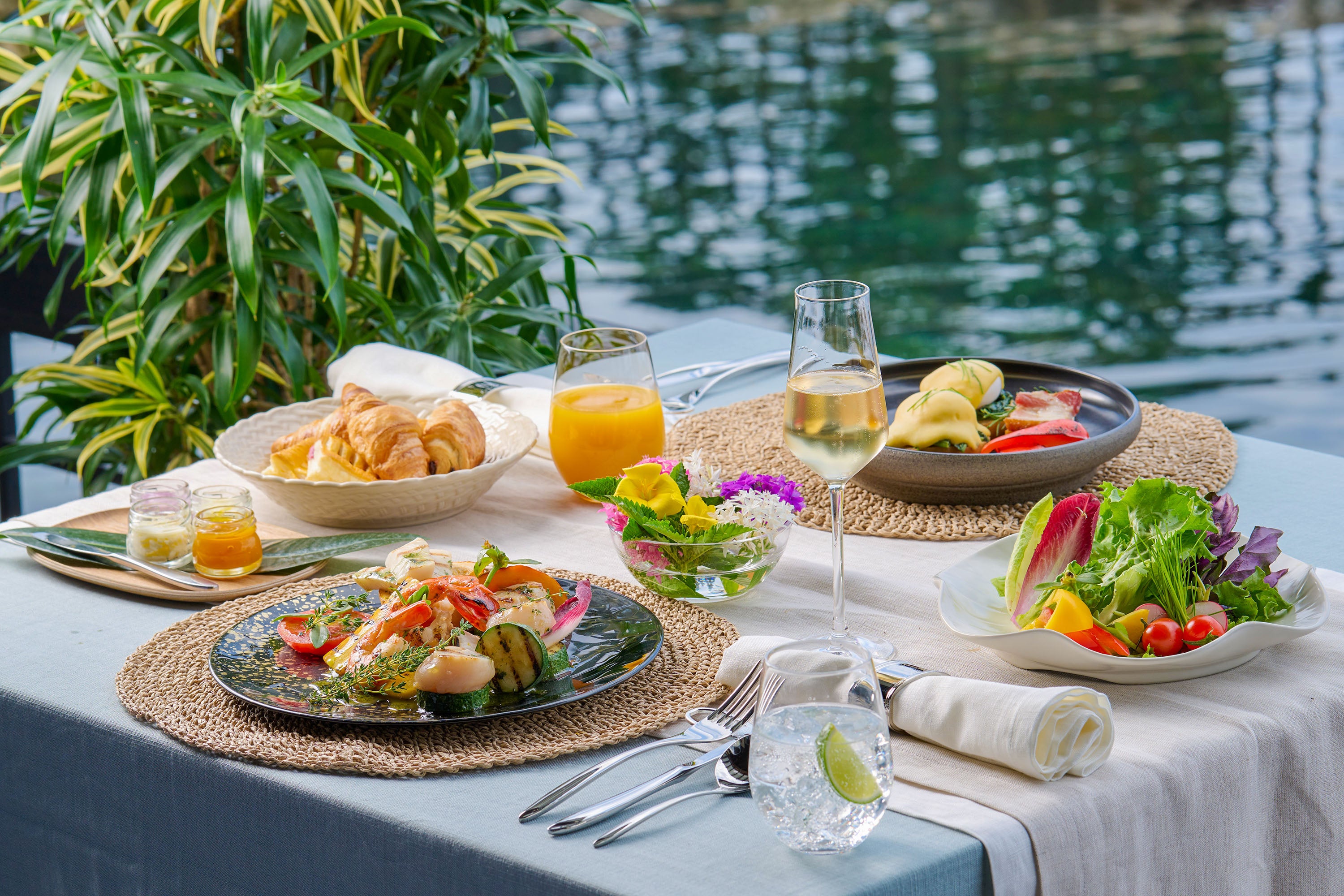 「シギラタートルベイ」は、島の食材を用いた独創的なシーフードレストラン。テラス席に隣接するラグーンではウミガメが悠々と泳ぎ、心地よい波音に包まれながらコースやアラカルトをお楽しみいただけます。朝食は、目の前でグリルするシーフードブロシェットなどのお好きなメインディッシュと、ハーフブッフェのサイドメニューをおめし上がりいただくスタイル。シャンパンのフリーフローとともに、贅沢で優雅な朝のひとときをお過ごしいただけます。