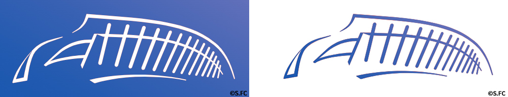 幾重にも並んだ柱は、スタジアムから発せられる熱狂を感じさせる大胆なラインとして表現。紫のグラデーションで表現されたシンボルは、この場所で新しい歴史が紡がれていく広島の未来への想いを馳せたものです。