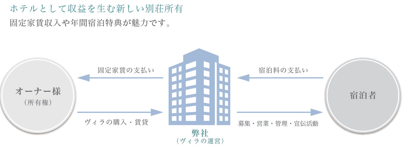 弊社はオーナー様の資産運用をサポートする、コンドミニアム及びプライベートプール付きヴィラ運営の専門家です。オーナー様の健全な資産運用のために、施設を利用される全てのお客様に最高のゲストエクスペリエンスを提供することで、オーナー様にも安心の専属一元管理を行っています。