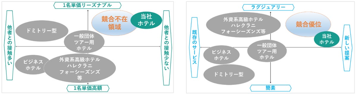 一方でターゲット宿泊客層が異なる為、ラグジュアリーホテルは弊社と競合関係にない。