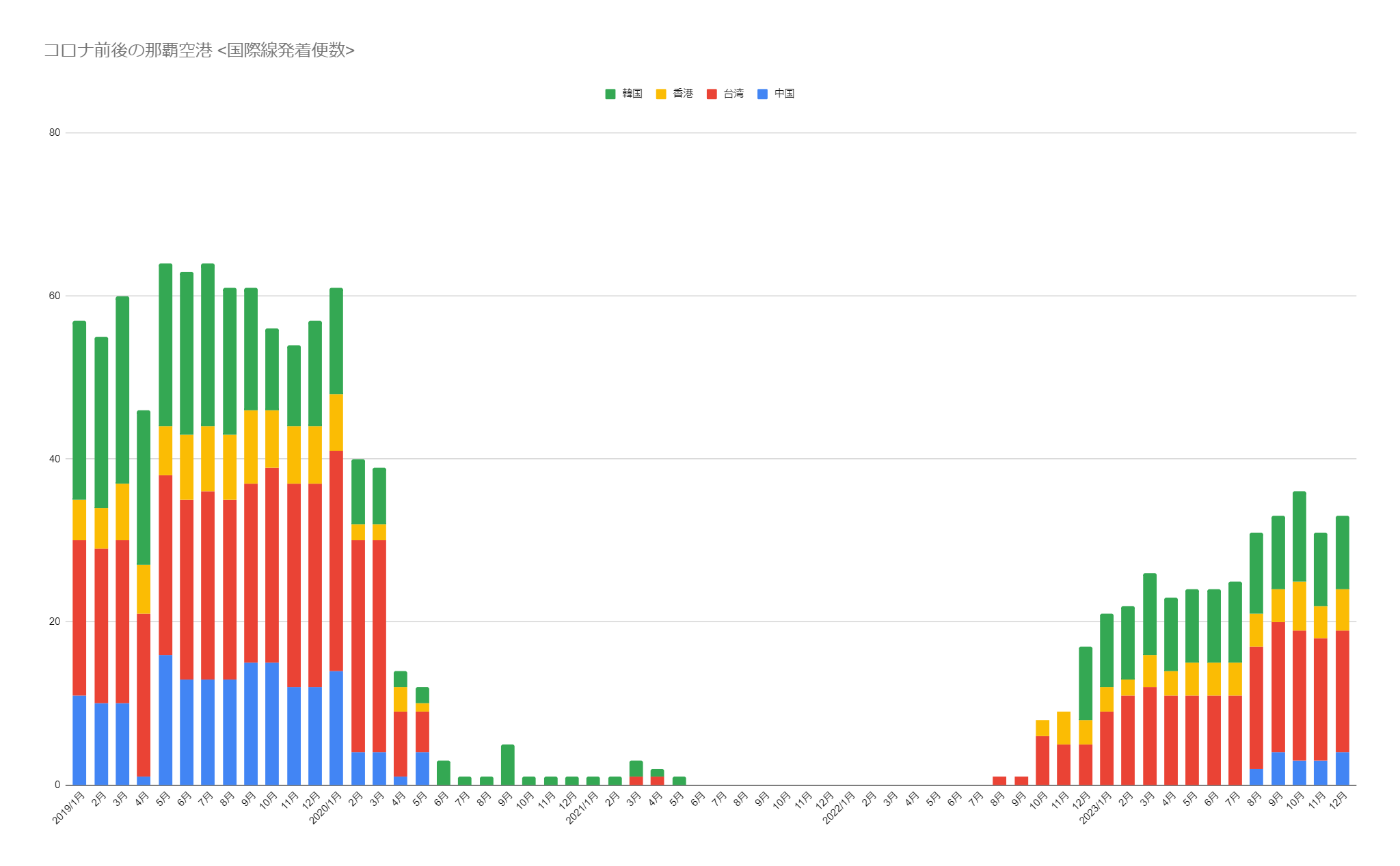 画像:コロナ前後の沖縄那覇空港の国際線発着便数