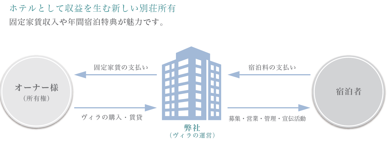 弊社はオーナー様の資産運用をサポートする、コンドミニアム及びプライベートプール付きヴィラ運営の専門家です。オーナー様の健全な資産運用のために、施設を利用される全てのお客様に最高のゲストエクスペリエンスを提供することで、オーナー様にも安心の専属一元管理を行っています。