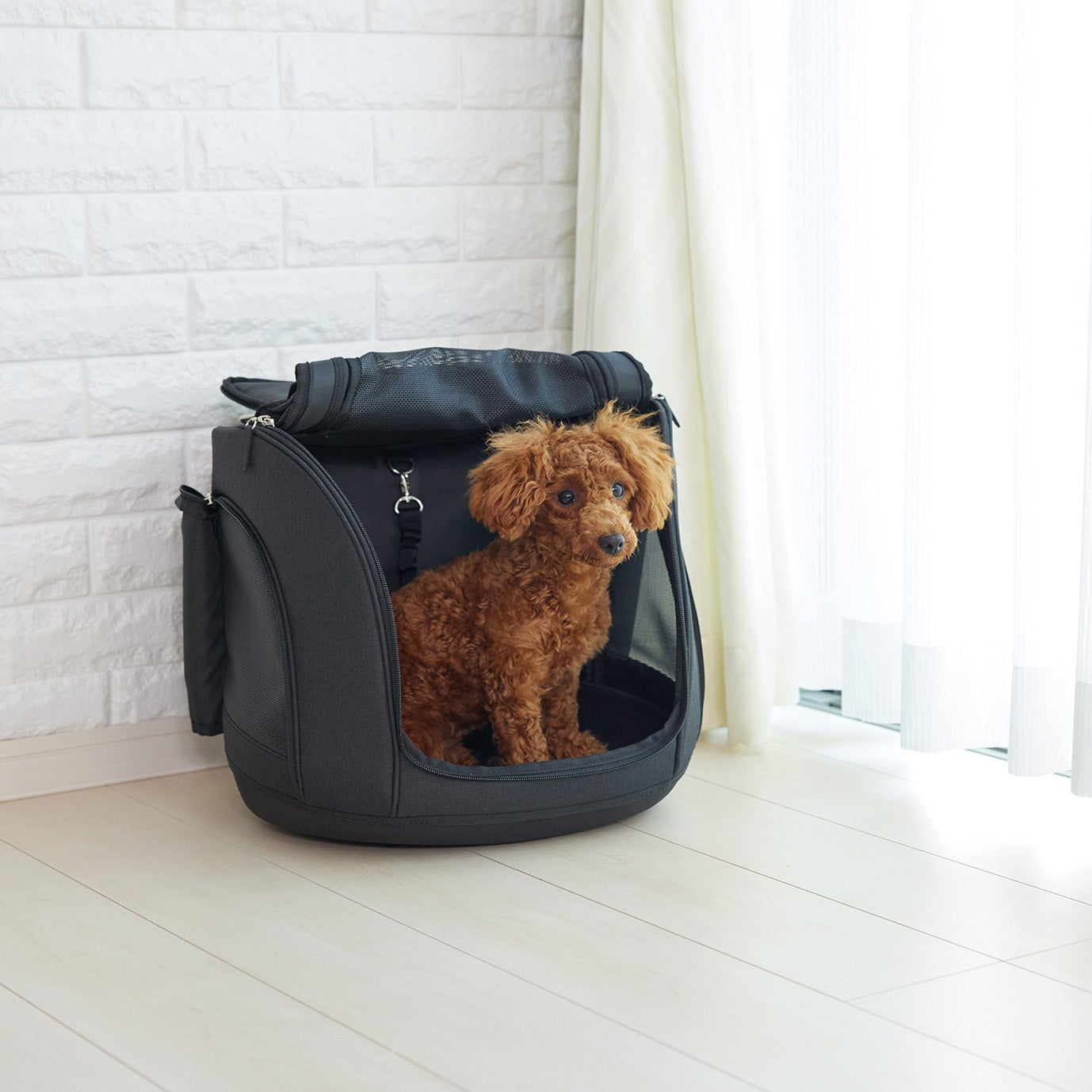 大き過ぎず程良いサイズ感で、中は奥行きのあるゆったりとしたスペースになっているため、ワンちゃんが快適に過ごせます。