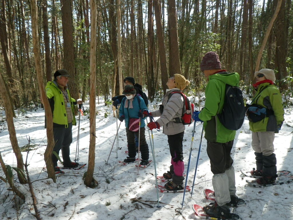 「自然環境学習グループ」による冬期プログラム。雪が積もった林間を散策しながら、動物の足跡や動物の食痕などを観察をします。