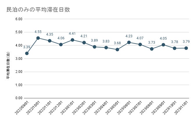平均の滞在期間に大きな変化はありませんが、訪日観光客の観光、レジャーでの滞在日数も、5割が7日以上※と長期化しており、長期滞在では2拠点から3拠点で宿泊先として滞在しているといえます。これから年末年始を迎えるにあたり、宿泊者の動向に注目していきます。
