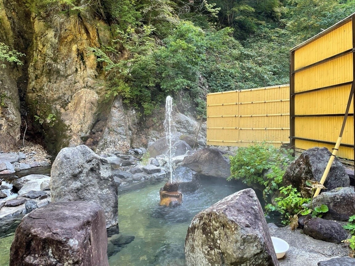▼秘湯「⼤平温泉」で⾃然とつながる