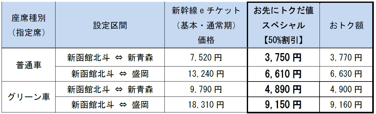 ※発売価格は「新幹線eチケットサービス(基本)」の通常期の運賃・料金より割引した金額となります