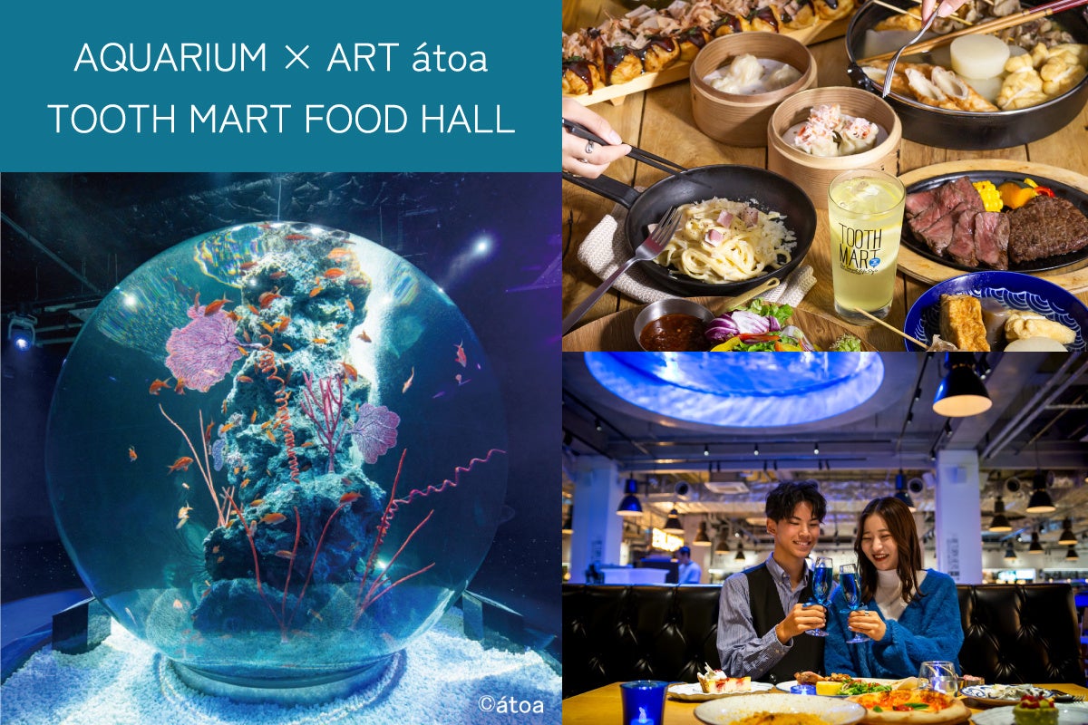 【神戸最大級のフードホール】神戸ポートミュージアム1階にある「TOOTH TOOTH MART FOOD HALL&NIGHT FES」では、神戸グルメが楽しめる食事とátoa入場券がセットになったプランを、2023年12月20日(水)より販売開始いたします!