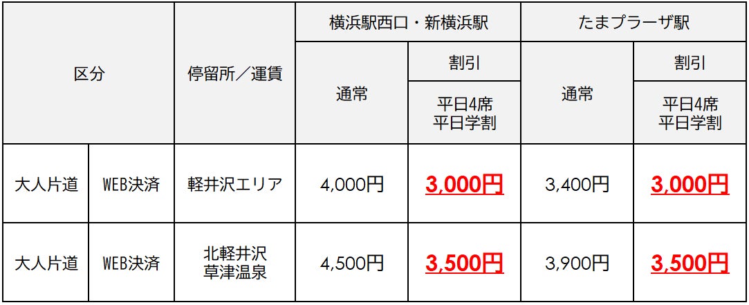 「横浜駅西口・新横浜・たまプラーザ-軽井沢・北軽井沢・草津温泉」の得割情報!