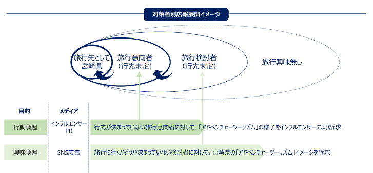 宮崎県は来県客数や宿泊客の増加・滞在時間の長期化などによる観光消費額の増加を目的に、新しいニ ーズへの対応やテーマ別観光を進めています。ドゥ・ハウスと REECH は宮崎県が進める観光振興におい て SNS を活用したプロモーション事業を実施することにより、自治体が直面するシティプロモーションの 課題解決に貢献いたします。