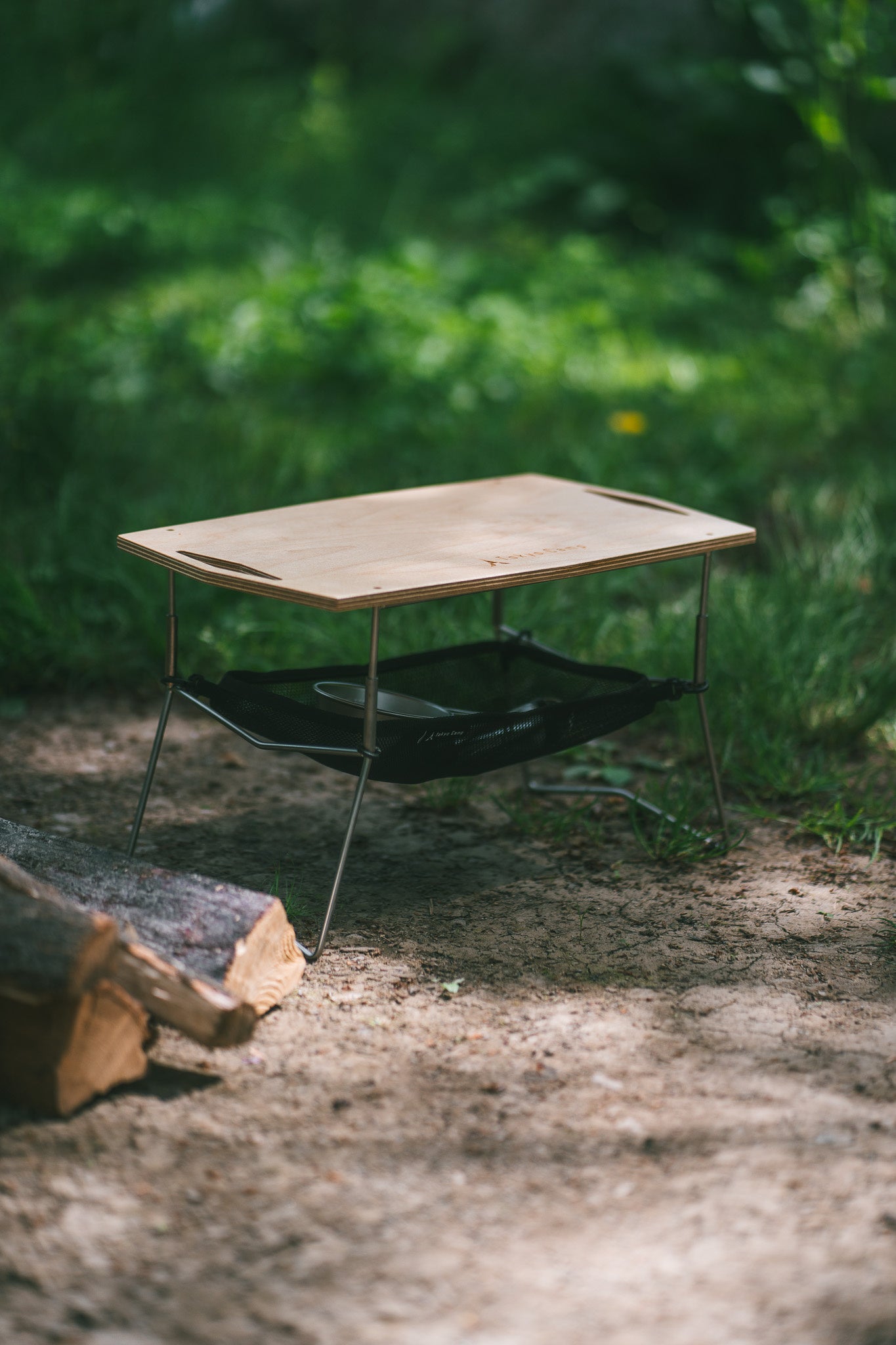 ミニテーブルセットでいつもの焚き火台を焚き火・ミニテーブルの2WAY仕様に。左右の持ち手にはシェラカップなどを引っ掛けられ、メッシュ棚には手の届く範囲に置きたい小物をちょい載せできます。焚き火前後のちょっとした時間を上手に活用できます。キャンプや色々なアウトドアシーンで使えるテーブルです。