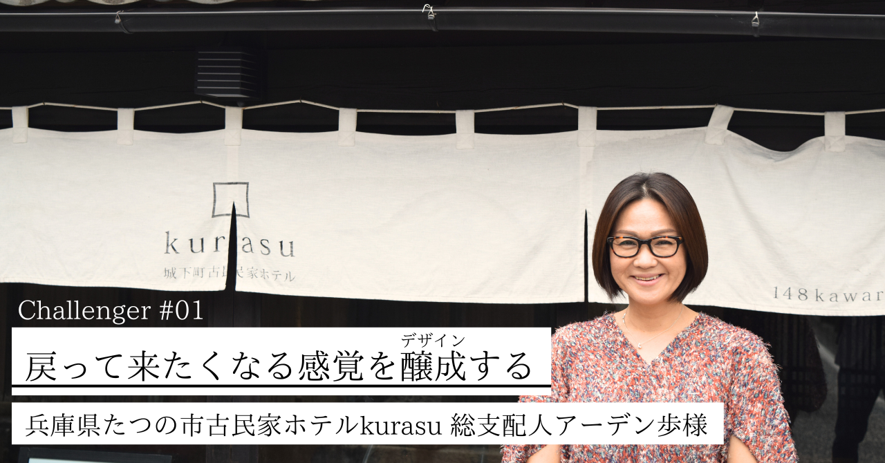 第1回として兵庫県たつの市の古民家ホテルkurasu総支配人・アーデン歩様の事例を取り上げています。