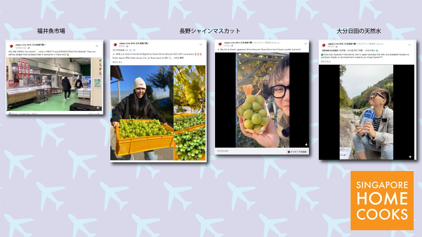 シンガポールを拠点に、アジア全域をカバーするマーケティング×クリエイティブ企業、DOU Creations Pte Ltd(代表:吉地⼤、以下DOU Creations)は、日本企業や地方自治体を対象に、シンガポール8万人のフォロアーを有するライブコマース「Singapore Home Cooks(以下SHC)」のFacebookグループ上での越境ライブ販売サービスを提供しています。