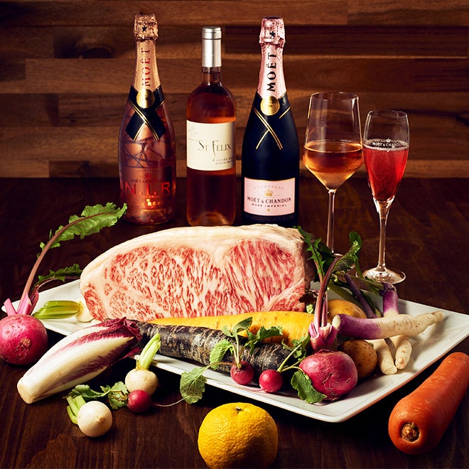 フレンチレストラン「フルーヴ」では、ロゼを表現した華やかな前菜と、シェフの高い技術で美しいロゼ色に焼き上げたメインディッシュの肉料理を味わえるフレンチコースをご提供します。日本料理「大阪 浮橋」では、サクサクと香ばしく濃厚なロゼ色に揚げられた桜海老の土鍋仕上げの炊き込みご飯と、黒毛和牛と山菜のお鍋など春の訪れを感じさせる会席料理をご用意します。鉄板焼「季流」では、余韻を感じられるほどの甘みと香り、口溶けの良さが感動的な、ロゼ色のきめ細やかな“サシ”の入った神戸牛ステーキをコース仕立てでご提供します。