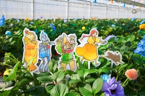 大人が屈むことなく、いちご狩りが楽しめるように設計されているいちごレーン。今回、小さなお子様には高かったいちごレーンの高さを約半分近くまで下げたキッズレーンが初登場。キッズレーンにはオズの魔法使いのキャラクターたちが装飾され、他では見られないファンタジーないちご狩りの風景を写真に収めることができます。