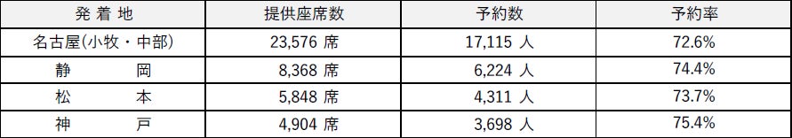 ※ 日本航空とのコードシェア分については、提供座席数および予約数に含まれておりません。