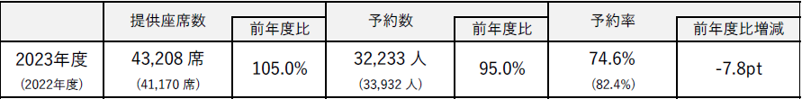 期間増便により提供座席数を増やしているために、予約率としては前年をやや下回っております。