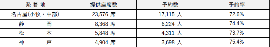 ※ 日本航空とのコードシェア分については、提供座席数および予約数に含まれておりません。