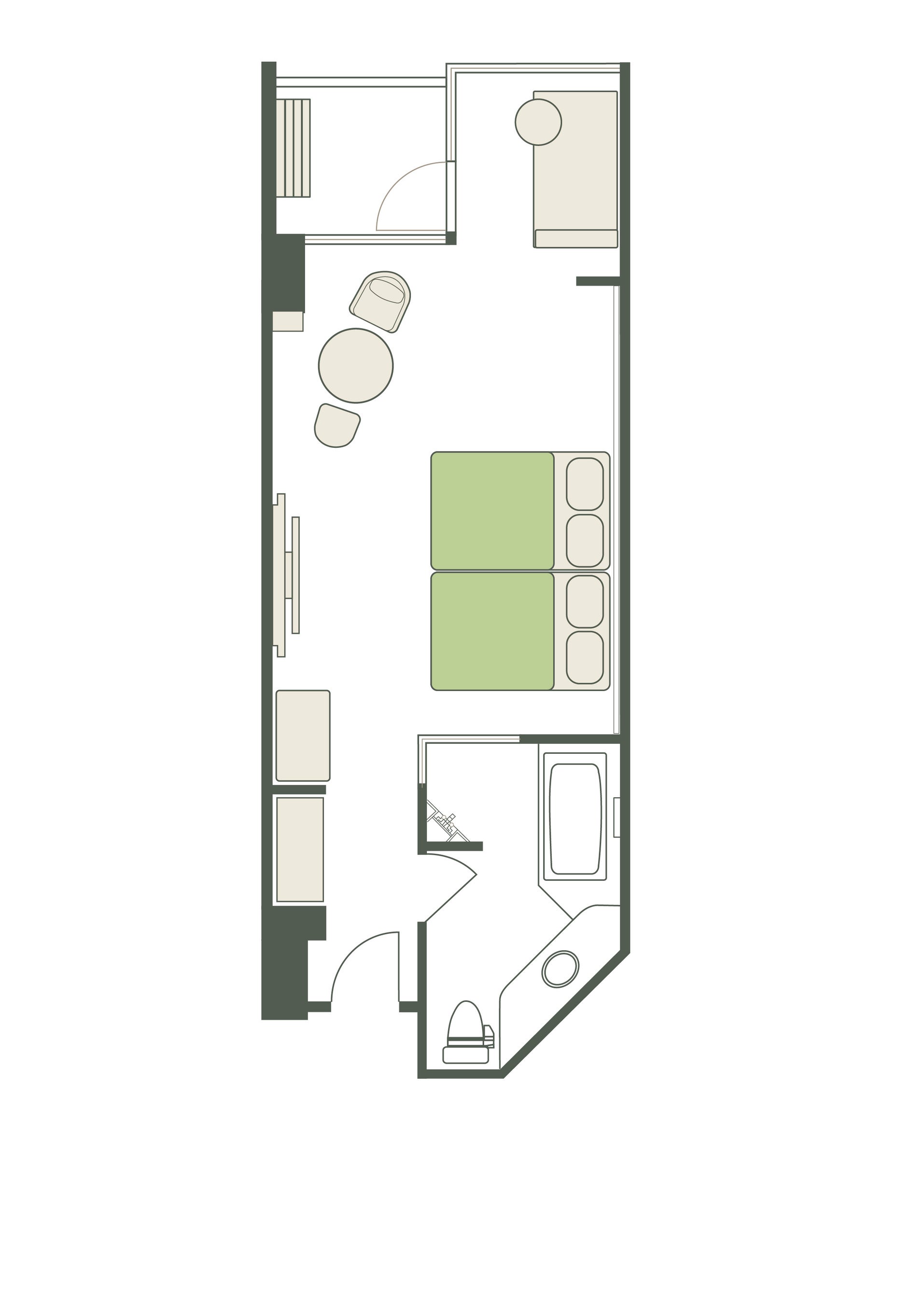 ナチュラルでラグジュアリーなデザインと機能的にレイアウトされた44.6㎡の客室には、オープンクローゼットや、デイベッドを設置したインナーテラスなど開放感が感じられ、滞在性を高める工夫が凝らされており最大5名まで宿泊できカップルやご家族で贅沢な時間を楽しむことができます。また、総大理石のバスルームには、独立したシャワーブースと、ゆったり足を延ばせるバスタブが設置され、リラックスしたバスタイムをお過ごしいただけます。