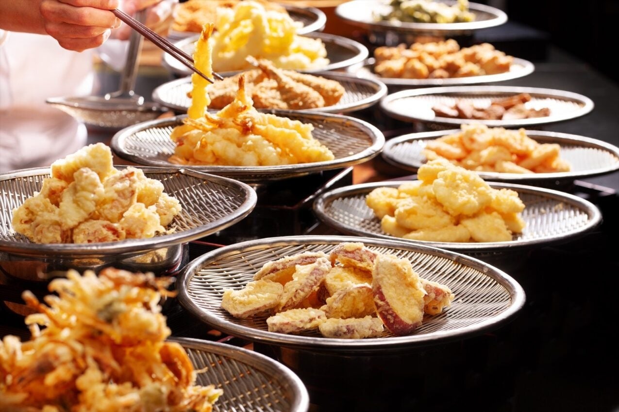その他にもその場で切り出す鮮度抜群の造り、寿司、揚げてたて天ぷら、阿波野菜から鳴門金時スイーツまで90種以上が勢ぞろい。