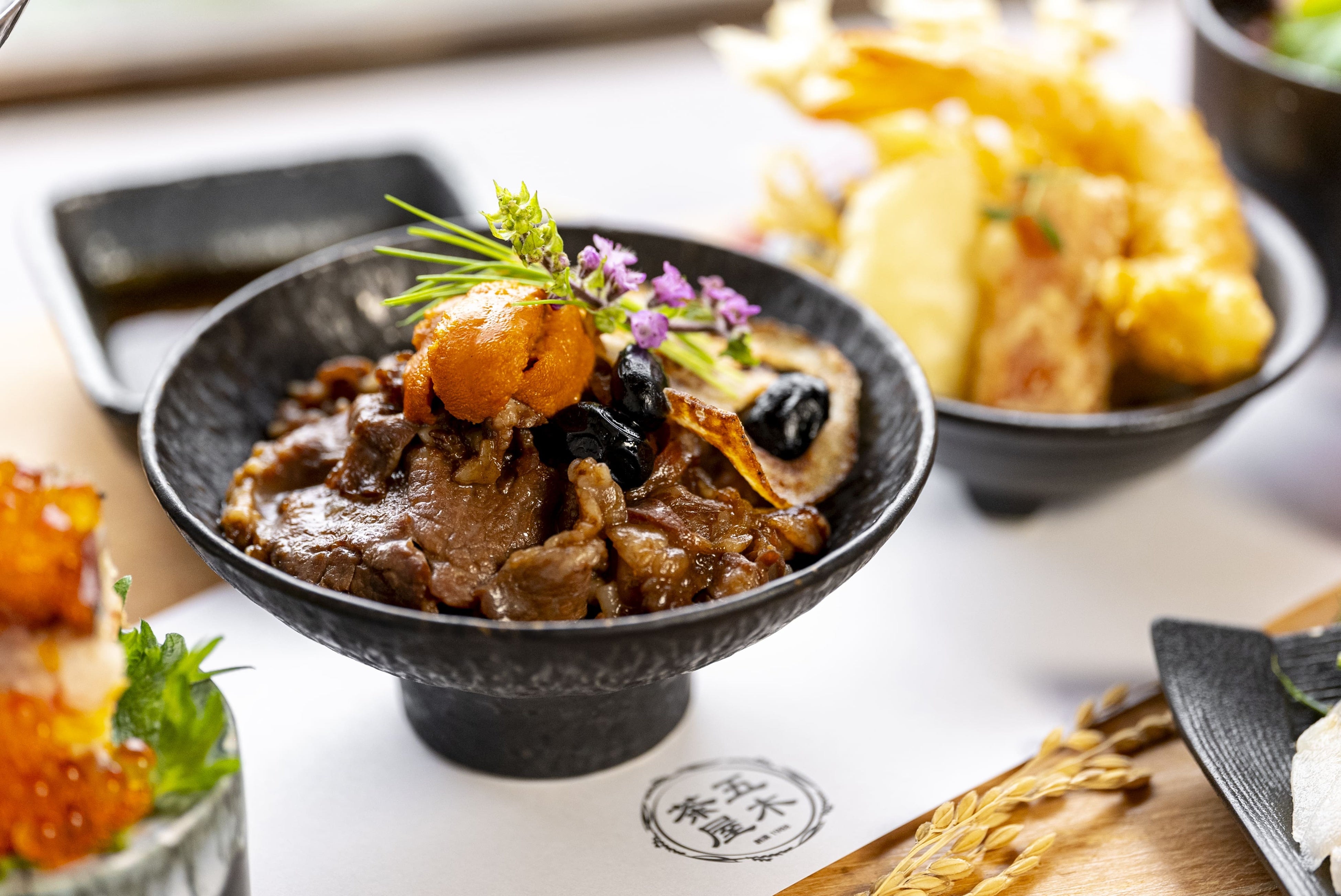 大きな和牛を特製のたれに絡め、贅沢に雲丹をあしらったすき焼き丼です。
