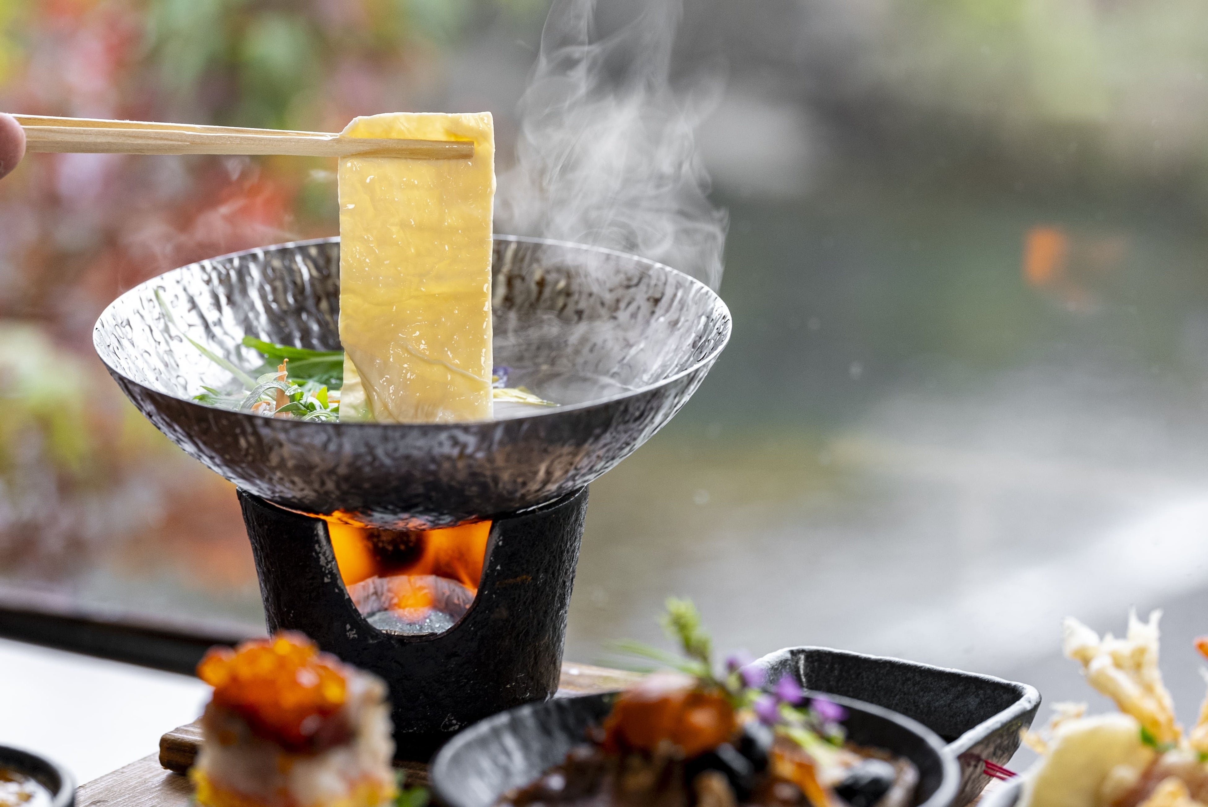湯葉をくぐらせながら旬の食材と共にお楽しみください。