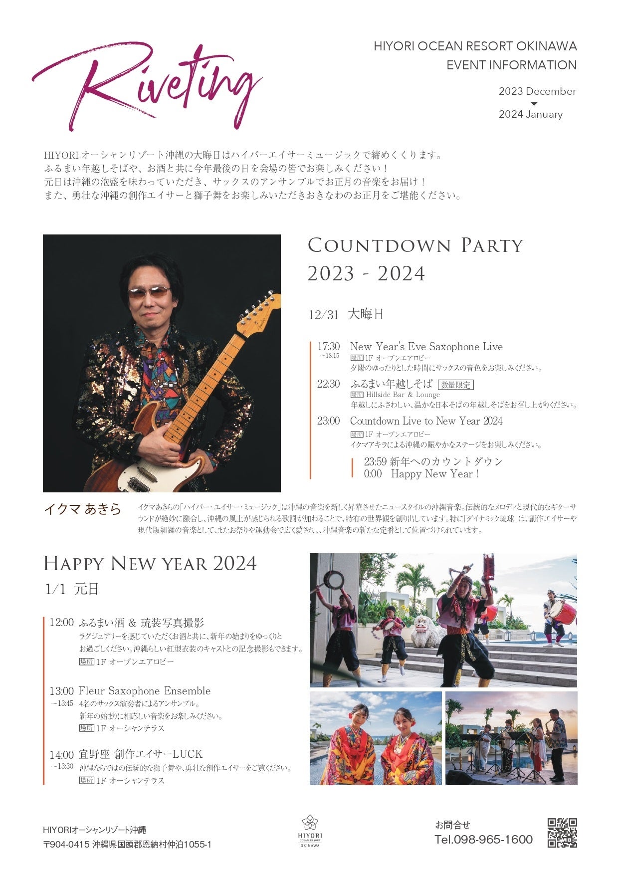HIYORI オーシャンリゾート沖縄の大晦日はハイパーエイサーミュージックで締めくくります。ふるまい年越しそばや、お酒と共に今年最後の日をお楽しみいただけます。