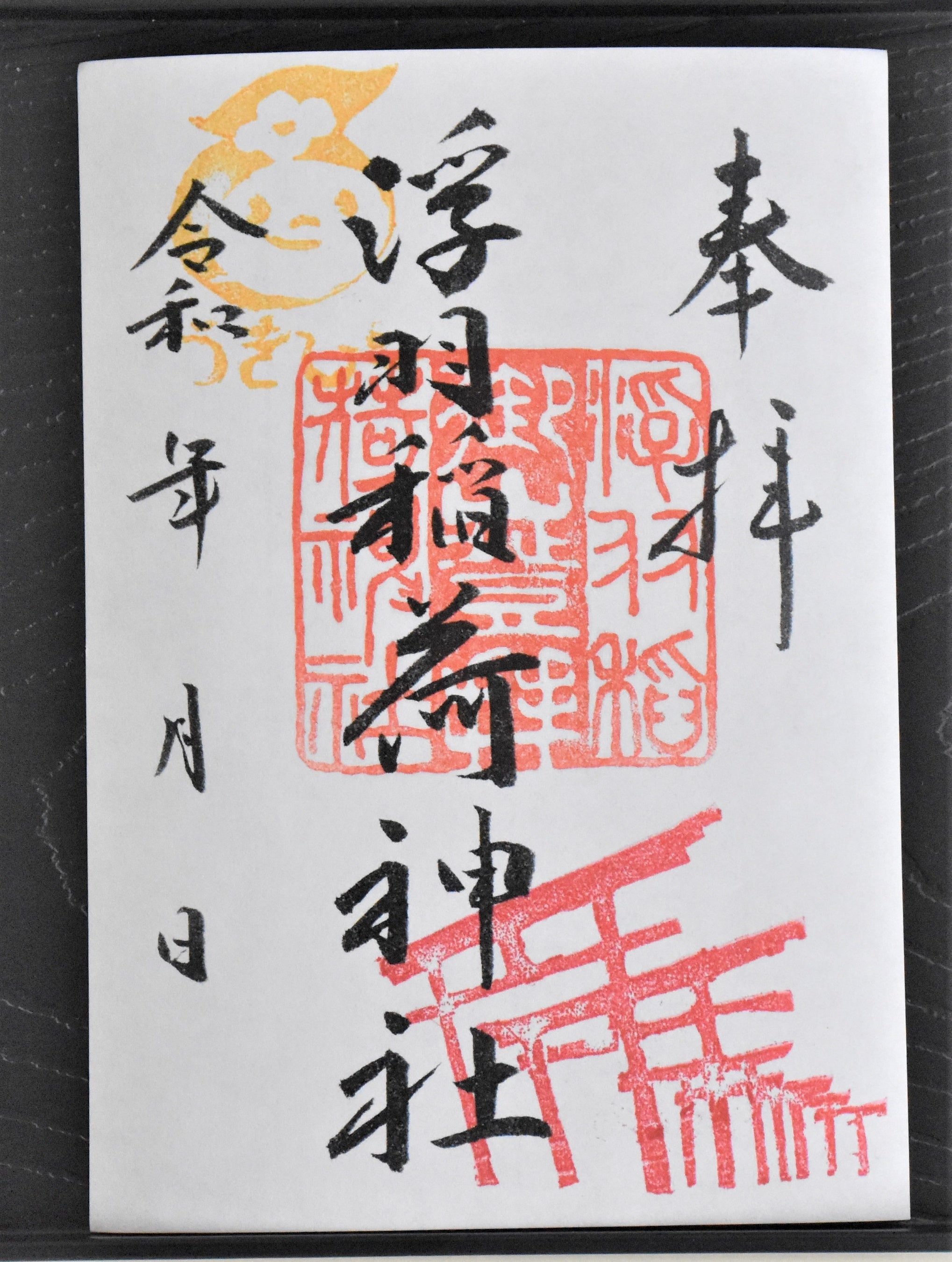 浮羽稲荷神社の鳥居、来年の干支の辰、うきぴーが箔押しされた御朱印となっています。