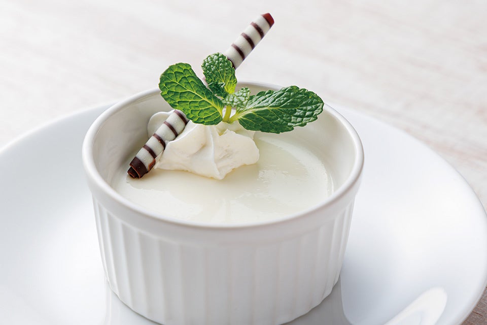 ご予約特典として、ご利用前日の17時までに予約されたお客さまを対象に「パンナコッタ」をご提供します。 牛乳・生クリームをベースにプルンとした食感に仕上げ、バニラの香りとキルシュの風味を重ね、甘さを控えた大人向けのパンナコッタです。