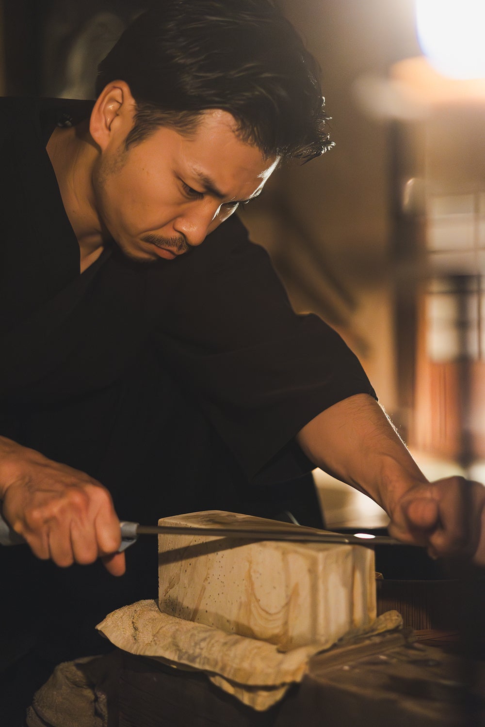 高校卒業後、父に師事し、家業の仏像彫刻に携わる。