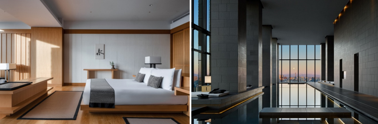 「アマン東京」は2014年12月22日にアマン初の都市型ホテルとして開業いたしました。高層複合ビル大手町タワーの最上階部33階から38階に、木と石と和紙による、日本の伝統文化と現代性を兼ね備えた広々とした静かな空間を提供しています。客室数84室、高い天井高を持つガーデンラウンジを始め、レストラン、バーラウンジ、1階別棟のカフェ、パティスリー、カウンター8席の鮨店、そして8室のトリートメントスイート、30メートルの屋内プールやフィットネスジムを持つアマン・スパなどを擁し、そのどこからでも東京の眺望や自然をご堪能いただけます。