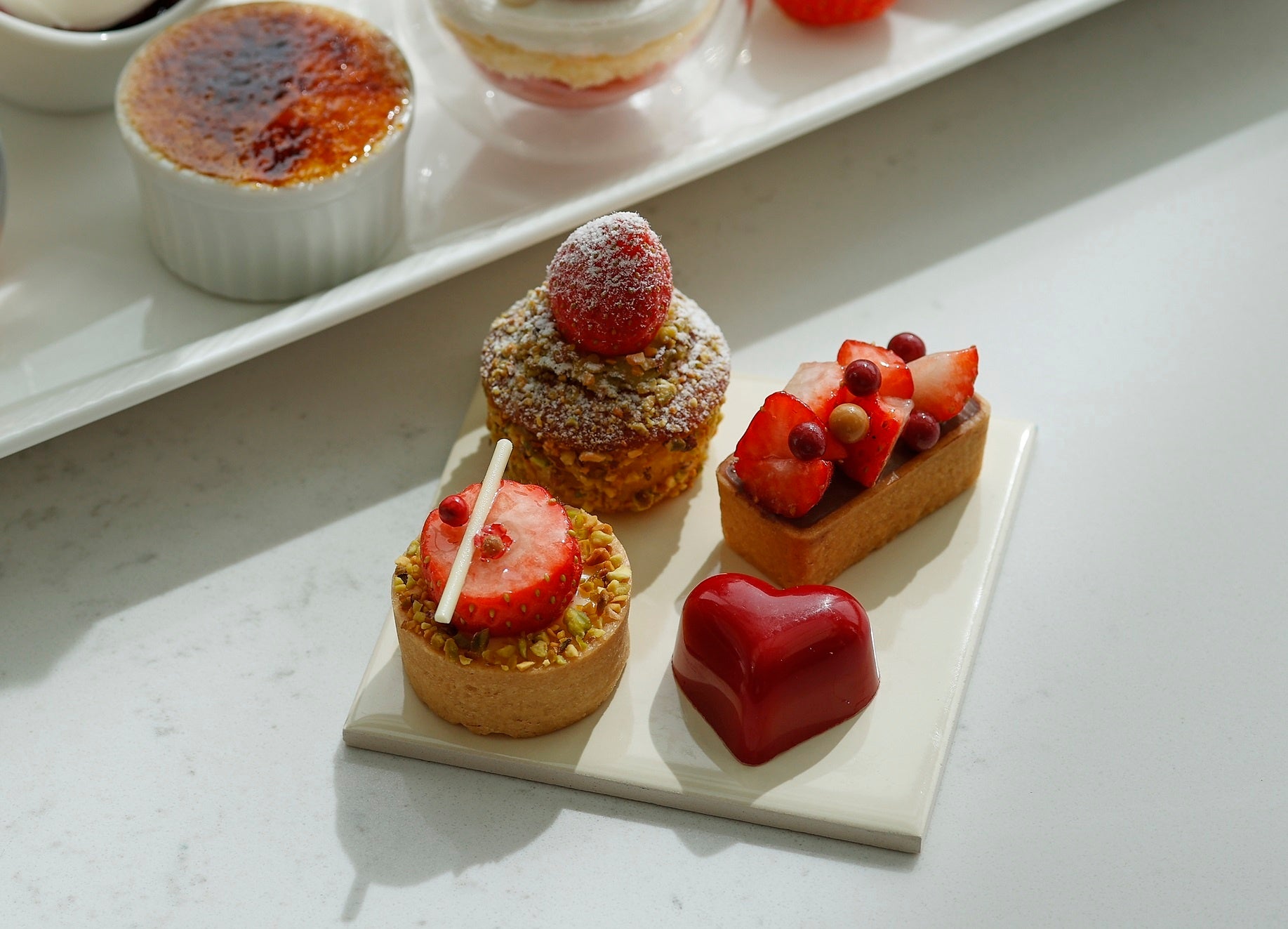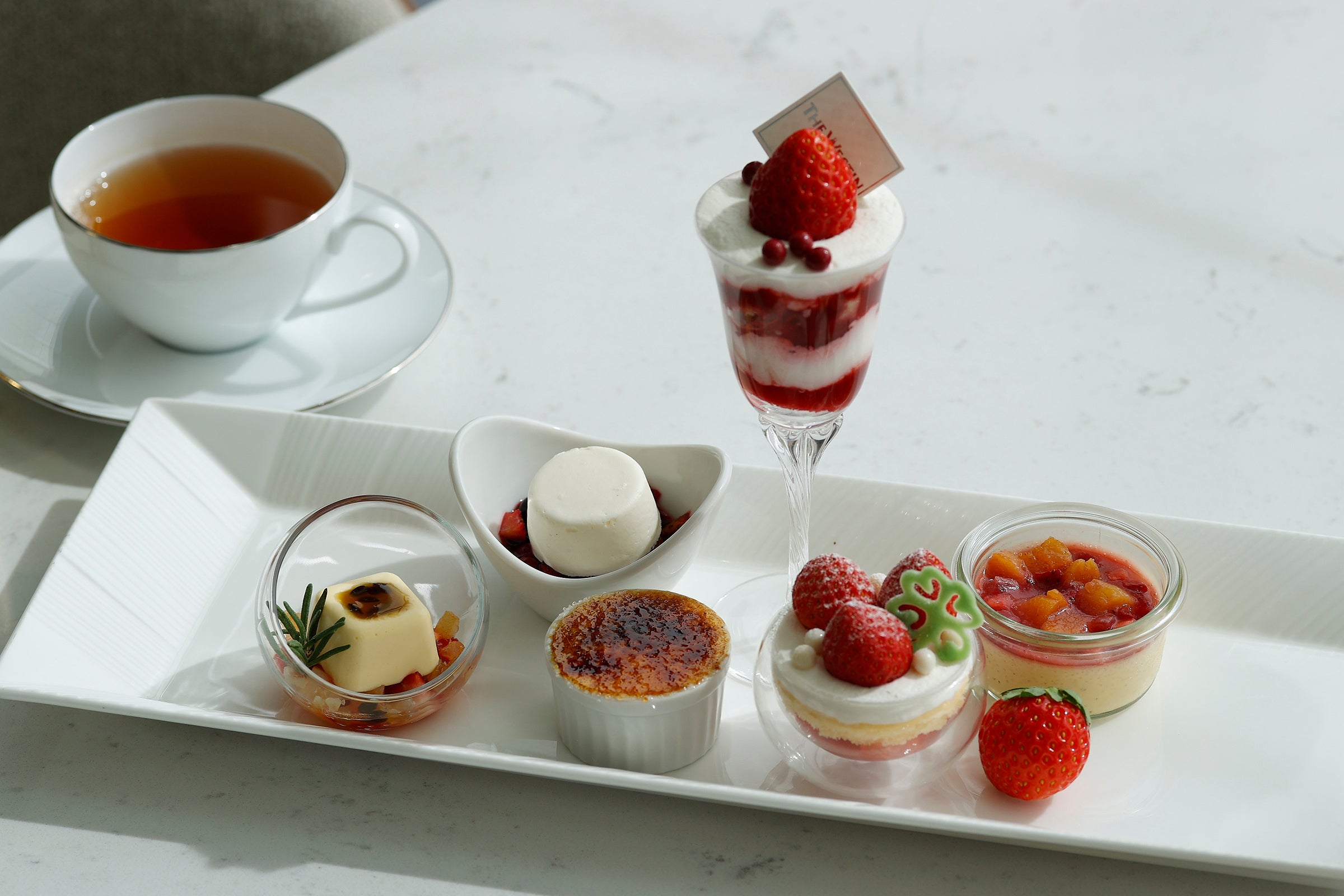 『デザート アンサンブル』は、西洋の様式美とウェスティンガーデンの自然が美しく調和する優雅な空間としてリニューアルオープンした1階ロビーラウンジ「ザ・ラウンジ」の平日限定デザートメニューです。エグゼクティブペストリーシェフ鈴木一夫が、その経験と技、スピリットの全てを込め、巧緻を凝らしてつくる10個ものミニデザートがプレートの上でハーモニーを奏でます。