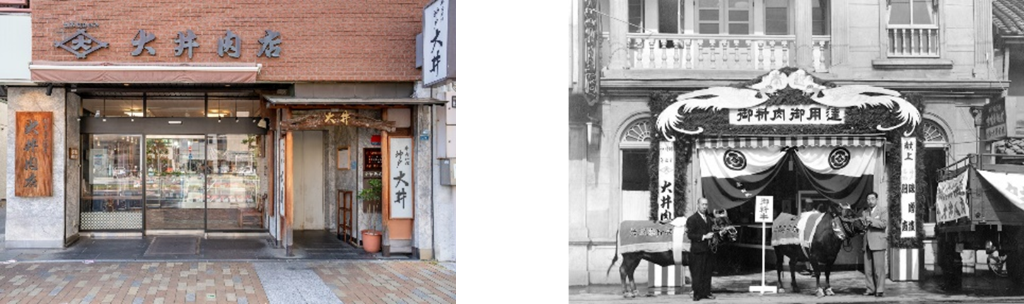 「大井肉店」は神戸で最も古く牛肉の販売をはじめ、明治4年創業、150年以上の歴史を持つ老舗店です。現在も創業当時と変わりなく、牛の血統と昔ながらの肥育方法にこだわりつづけ飼育された牛肉を代々伝わる独自の熟成方法により風味豊かでとろけるような牛肉に仕上げ、店主みずから厳しく吟味し、熟練した職人がひとつひとつ丁寧に調整した肉を提供しております。