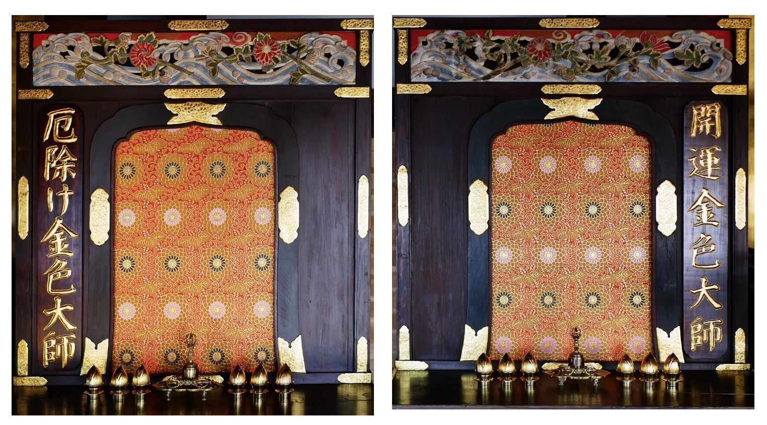 黄金に輝く「厄除け大師様」と「開運大師様」を同時にまつっているのは日本で唯一当寺だけです。