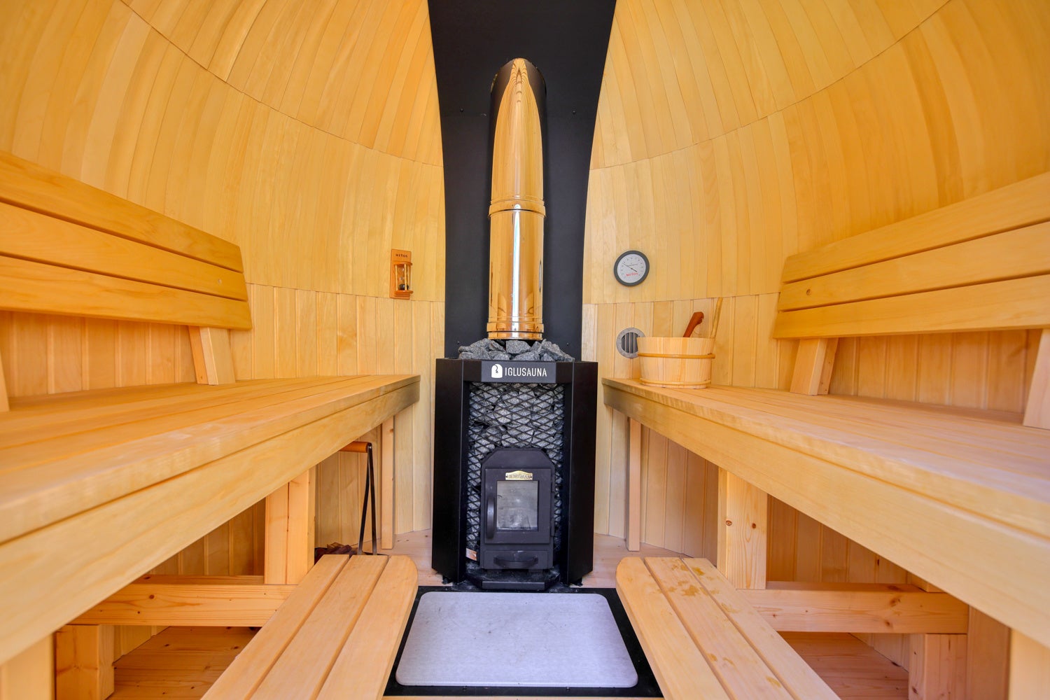ドーム型の形状が特徴的なサウナ。ロウリュがとても感じられやすいサウナとなっております。