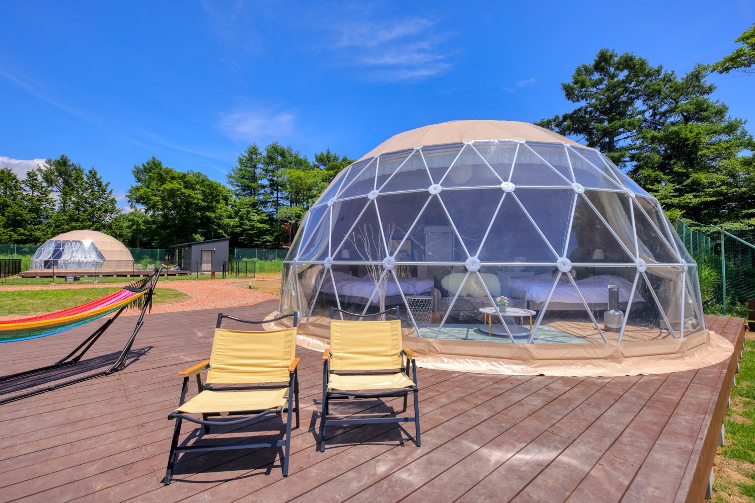 お部屋は6棟のドーム型グランピングと12月に新たにOPENしたプライベートドッグラン付きのコテージタイプの客室「ドッグランコテージ」の特徴の異なる7棟からお選びいただけます。