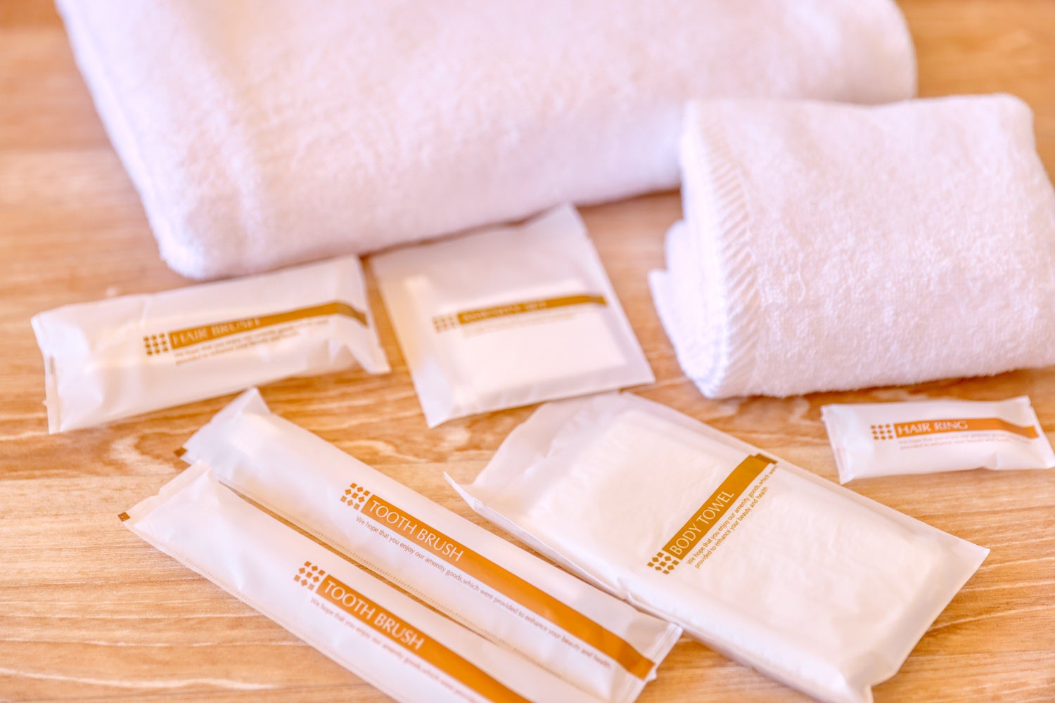 アメニティ:フェイスタオル、バスタオル、シャンプー、コンディショナー、ボディソープ、ハンドソープ、歯ブラシ、クレンジング、化粧水、乳液、ヘアブラシ、カミソリ、レディースセット