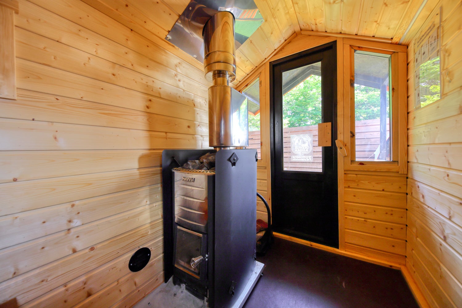 トレーラー型のサウナ。温度が高温まで上がり、サウナーにオススメ。