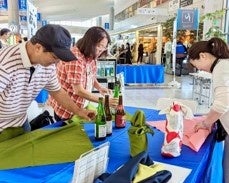 海外の日本食ブームに伴い日本酒の知名度は上昇しておりますが、まだ日本酒を召し上がったことがないお客様や、訪日中に機会を逃してしまったお客様にも気軽に日本酒を体験いただけるよう、日本全国の日本酒の試飲を多数ご用意し、唎酒師(ききさけし)による説明を交えたレクチャーを実施します。また、日本全国47都道府県の日本酒を一同にご案内するパネル展示や、風呂敷を使って酒瓶を包むギフトラッピングワークショップを開催いたします。